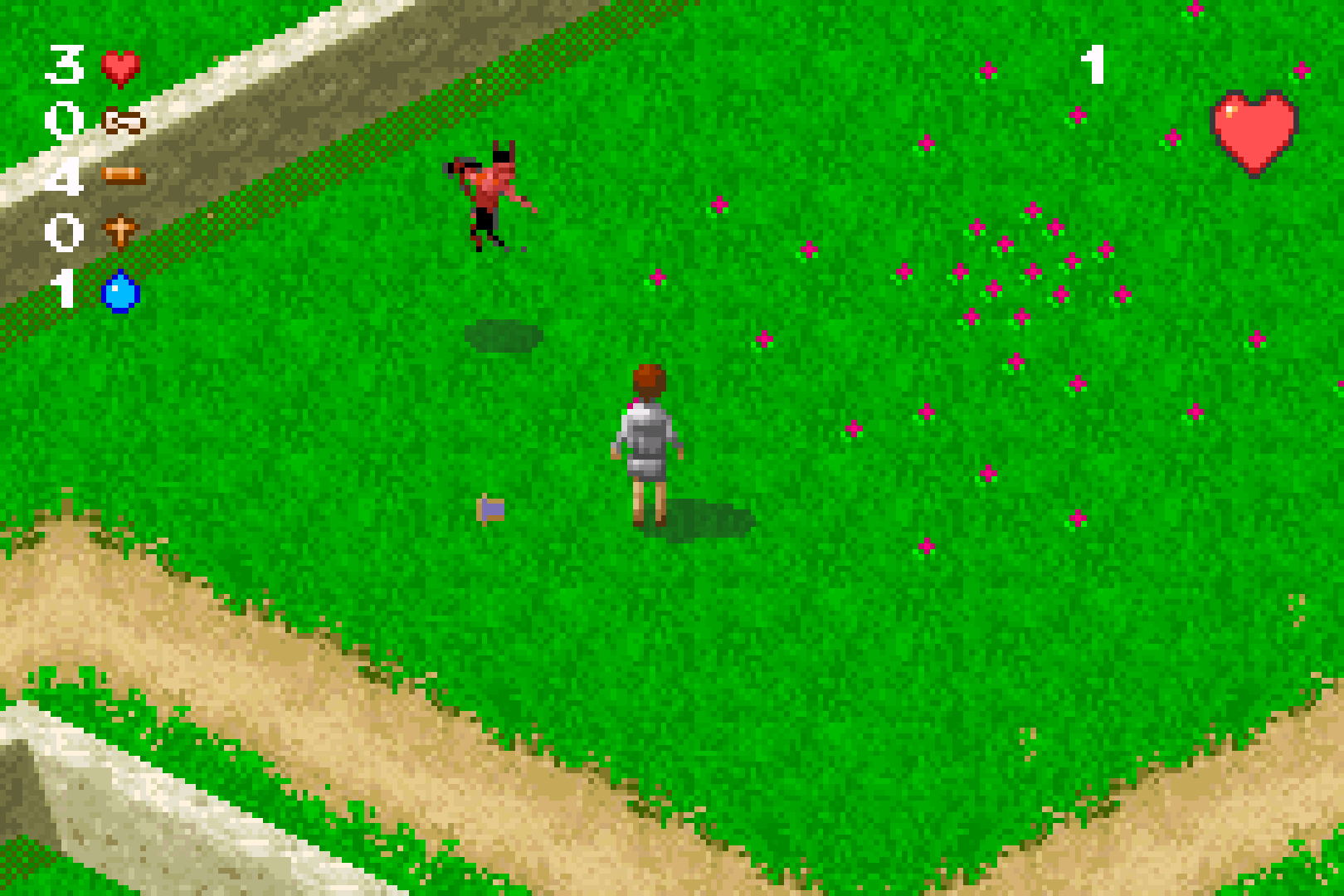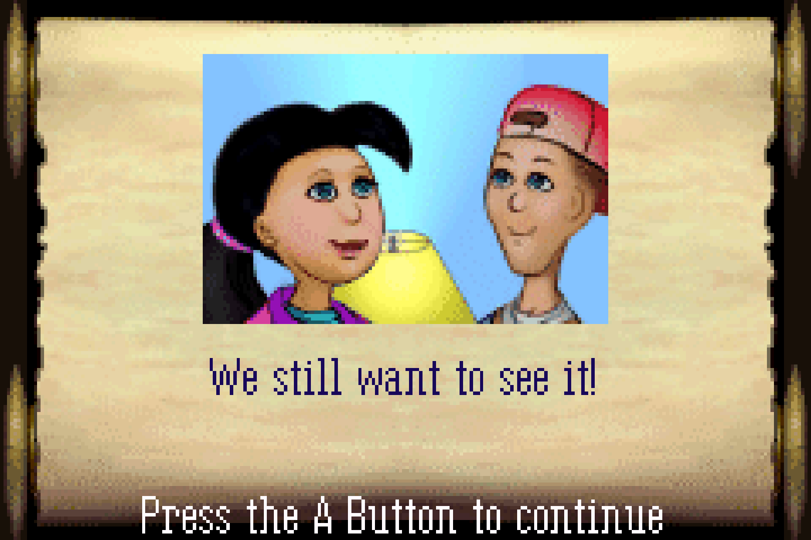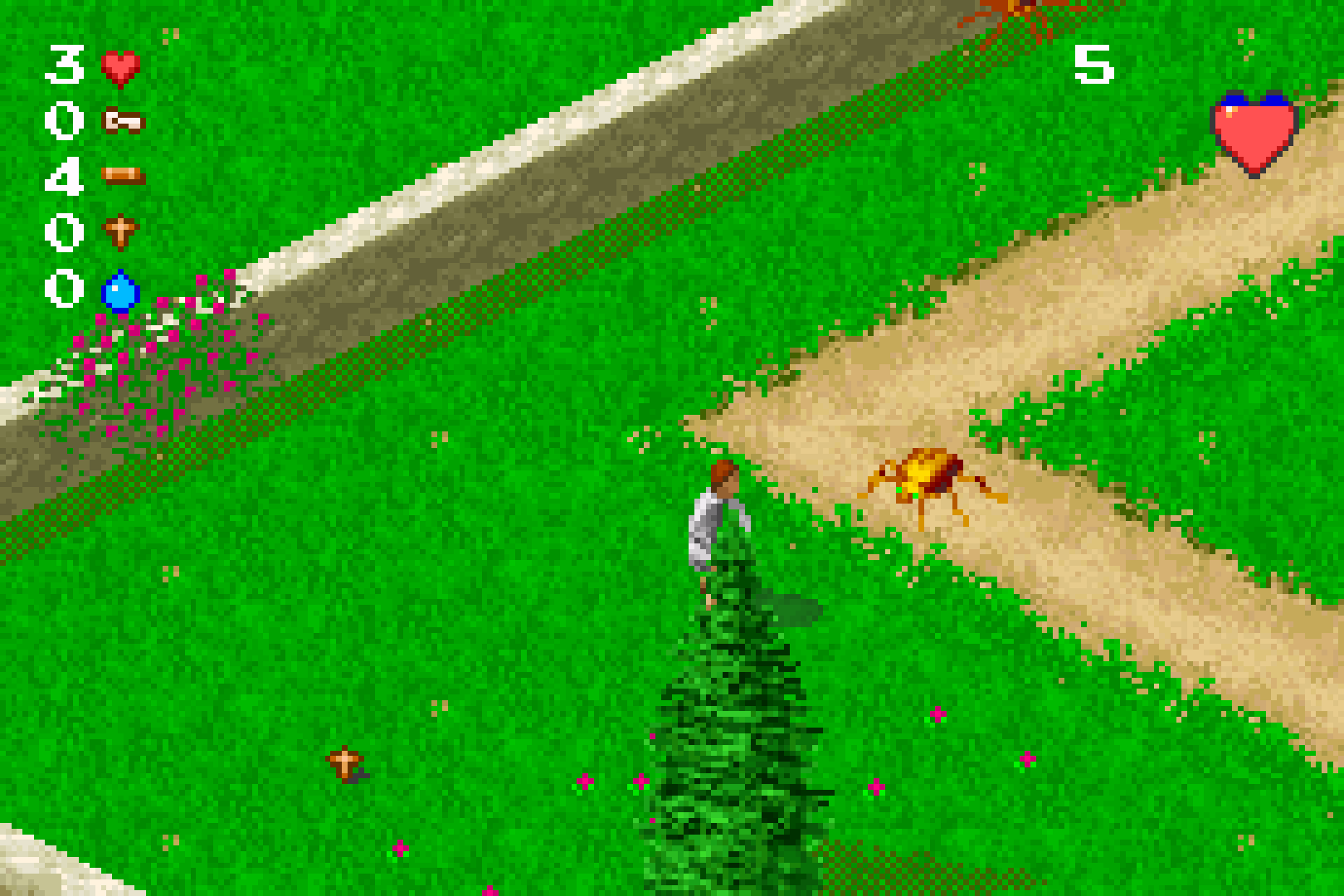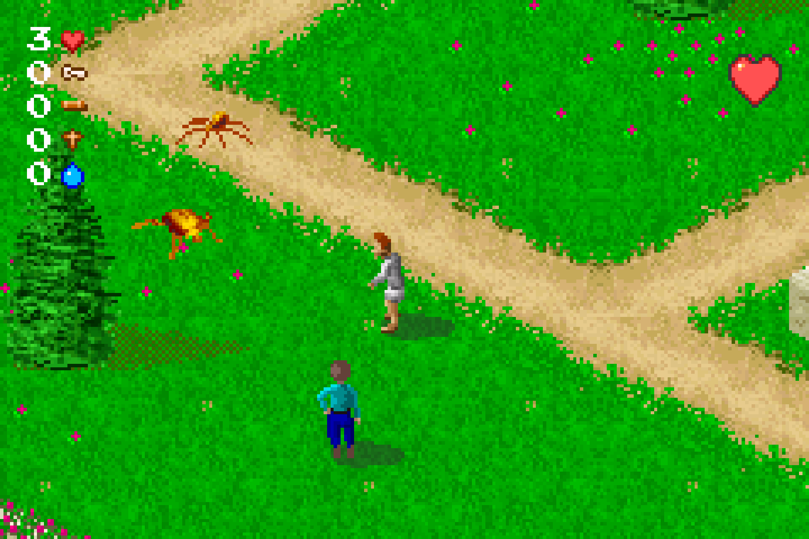 In any case, across each zone, you’ll encounter the here-ticks (quite possibly the greatest pun I’ve seen in any GBA game), who are easily dispatched with a jump and good ‘ol squish. Upon defeating any of them, they’ll either drop a cross, which can be traded with NPCs for holy water, which I mentioned makes the Tricksters vulnerable to, uh, quizzing, or a scroll, which will contain a piece of Bible trivia and will be an answer to one of the questions in that particular level. As I said, taking its premise in a vacuum, I don’t loathe the Bible Game. I like the almost little diorama settings of each level, the nearly diegetic setting of a child's imagination of ‘the Bible Kingdoms’. It's just a shame that the game’s already shaky foundation crumbles totally when you get to the game’s central point - the bible quizzes to defeat the Tricksters.