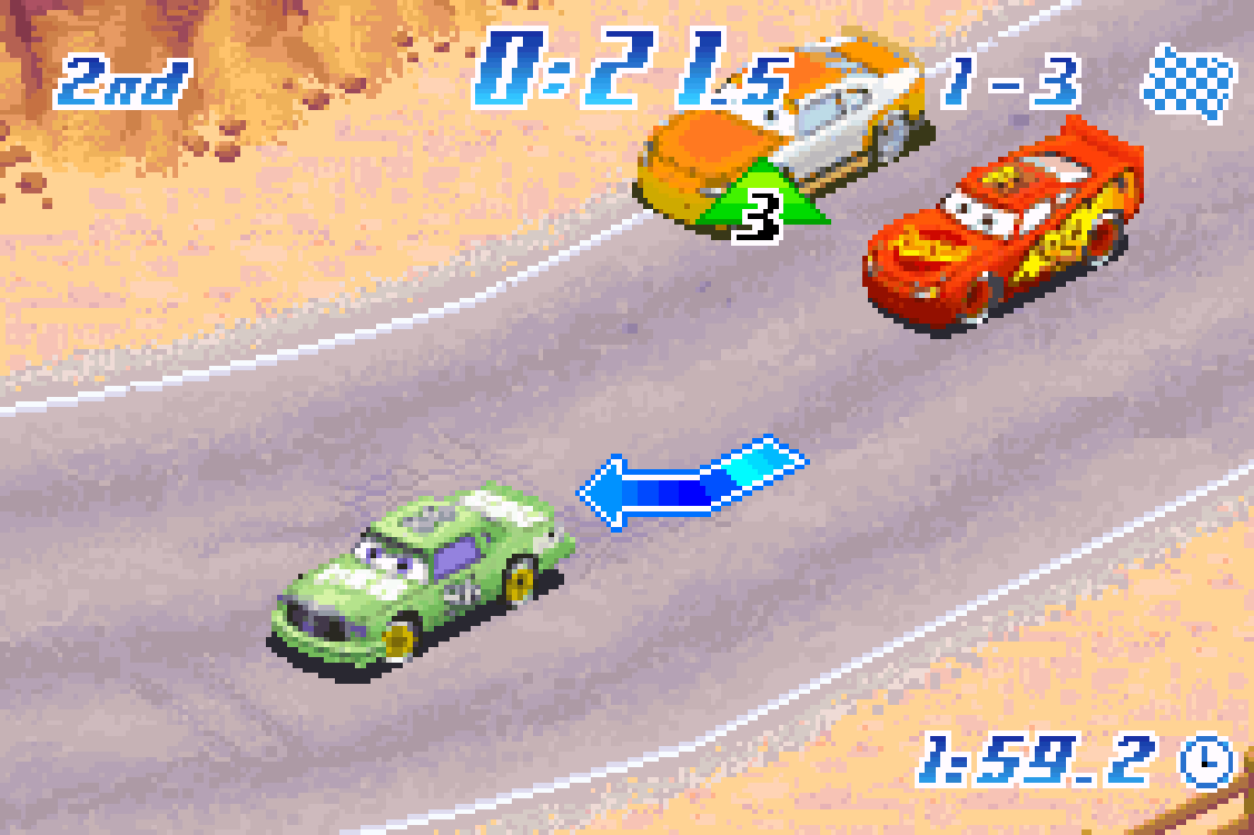 Cars, being as transitory as it is, is nothing to write home about, but considering the rest of Pixar’s handheld - and hell, most of their console - output, Cars is perfectly serviceable. There’s some real tasty sauce heaped on it’s otherwise simplistic driving mechanics, and the writing helps capture what makes the Pixar films of this era so charming. I just wish the central set piece of the game - the Piston Cup stadium races - weren’t so much more boring than their countryside brethren. Look, I think the racing game scene on the GBA is quite weak to start with, and Cars isn’t doing much to bulk it up, but it has inherent charm and sauce enough to not throw it directly into the bargain bin with the rest of the genre. So I’ll just end this with a car-like: KA-CHOW!