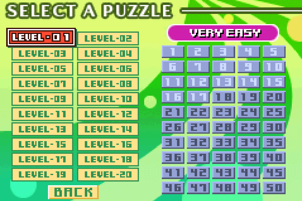 What makes Dr. Sudoku really stick out amongst not only its contemporaries on the GBA (read: not many), but in Sudoku-style games as a whole is the sheer number of puzzles you have to tackle. Across twenty levels of complexity, there are a grand total of one thousand bespoke puzzles to complete. Sure, there’s probably a bunch of phone apps that boast nigh-on endless amounts of Sudoku puzzles to complete, but I’m willing to bet that the ones in Dr. Sudoku feel… I dunno, a little more hand-crafted? Not to say AI is behind a lot of modern ones, but you know what I mean - I’m sure puzzle creators are a little more willing to put care into a game that’ll be retailing for 39.99 USD then one of those ten dollar Sudoku books.