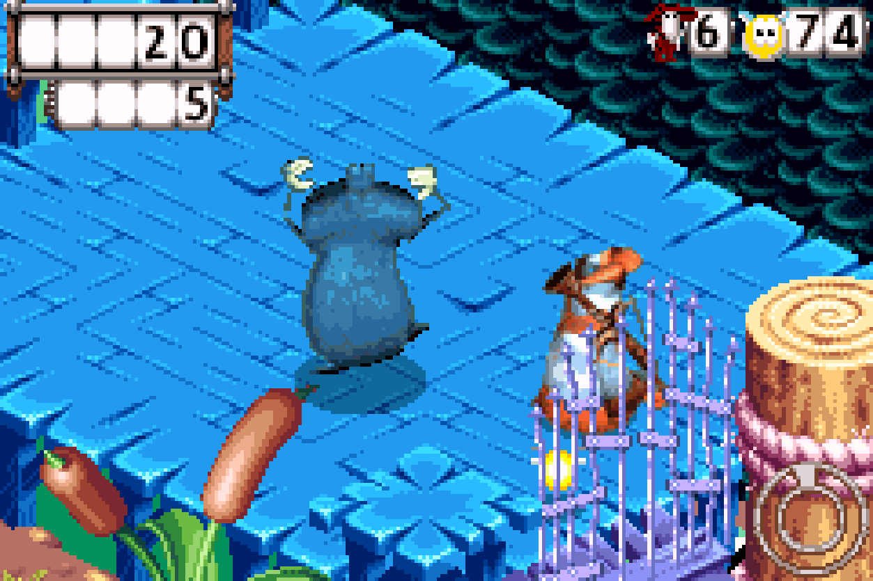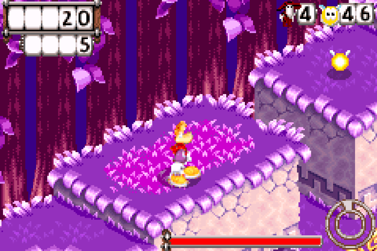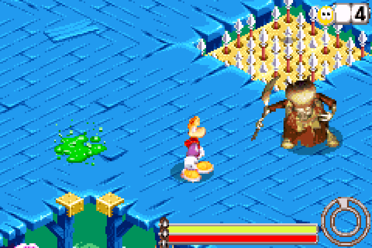 But enough jokes - how *is* Hoodlum’s Revenge? Well, it’s a weird one. Rather than the side-scroller Rayman was born from, or the 3D adventures that make up the half-dozen versions of Rayman 2, Hoodlum’s Revenge takes the middle-ground that’s pretty much tailored made for the Game Boy Advance - an isometric, 3D-platformer collectathon. Look, as much as Rayman 3 was one of the best platformers I’ve played thus far, I’m glad for something a bit different. It’s not perfect, especially when it deviates from its initial premise to some dizzying lows, but overall, it’s a decent title that doesn’t overstay its welcome, especially when it stumbles. And by stumble, I mean a skull-shattering faceplant.